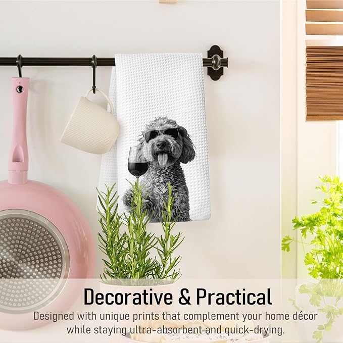 Wine Cavapoo Kitchen Towels, Cavapoo Gifts for Women Dish Towels for Kitchen Drying, Dog Lover Mom Gifts for Women Hand Towels for Bathroom, 16x24 Inch