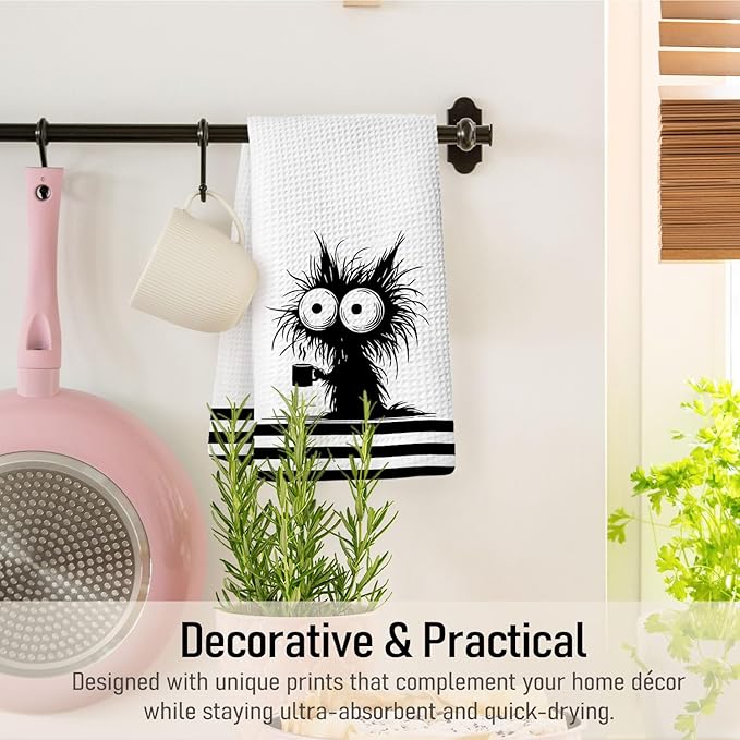 Funny Coffee Black Cat Kitchen Towels, Cat Lover Mom Lady Gifts for Women Dish Towels for Kitchen Drying, Quirky Kitten Kitty Hand Towels for Bathroom, 16x24 Inch