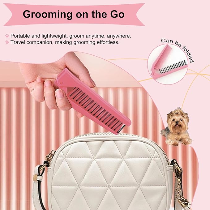 Folding Small Dog Grooming Brush - Perfect for Shih Tzus, Yorkies, and Maltipoos - Ideal Puppy Hair Brushes for Maltese and Small Breeds(Hot Pink)
