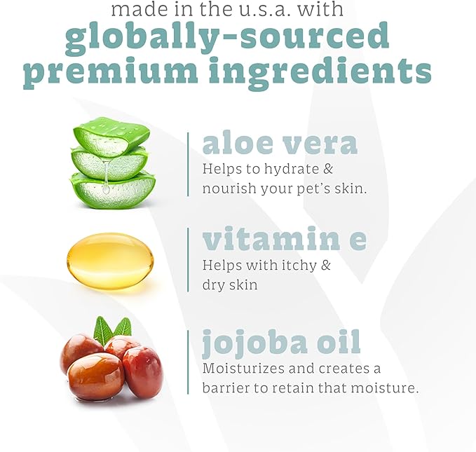 - FORMULATED WITH ALOE: Infused with the soothing and moisturizing properties of Aloe Vera, ensuring a soft, healthy, and shiny coat while promoting skin hydration.