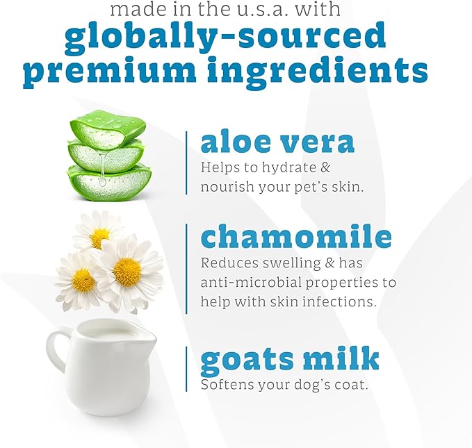 - MOISTURIZES & STRENGTHENS: Enriched with goat’s milk, oat hydrolysates, and chamomile, this shampoo and conditioner duo hydrates, strengthens, and nourishes your dog’s coat for a healthy, soft, and shiny finish.