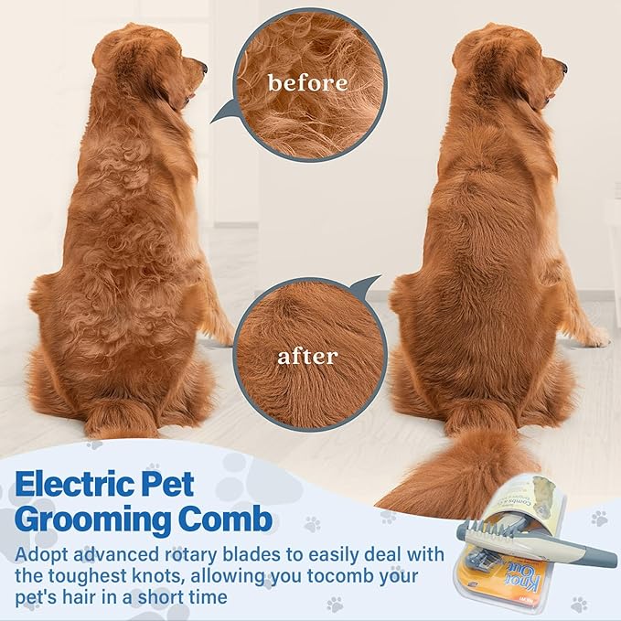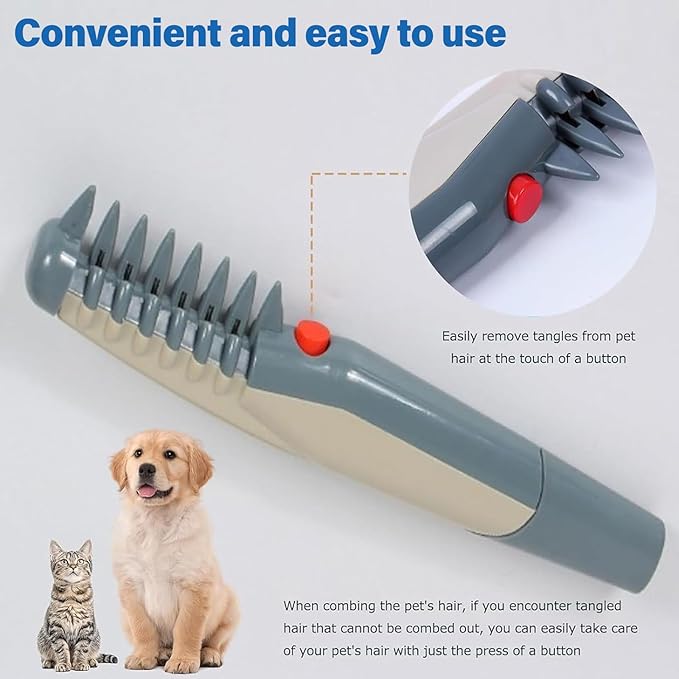 - Swift Grooming: The Lifweb Mataway E - Comb Pet Grooming Comb features hidden rotating blades that can smoothly cut through tangled fur. With just a button press, it instantly eliminates knots, ensuring fast, smooth, and safe grooming, saving you and your pet from unnecessary stress