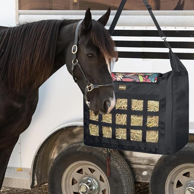 - Ample Capacity Hay Bag: Designed to accommodate the appetites of your equine companions, our horse hay feeder bag boasts a spacious interior capable of holding 2-3 flakes of hay, ensuring they stay satisfied for longer durations.