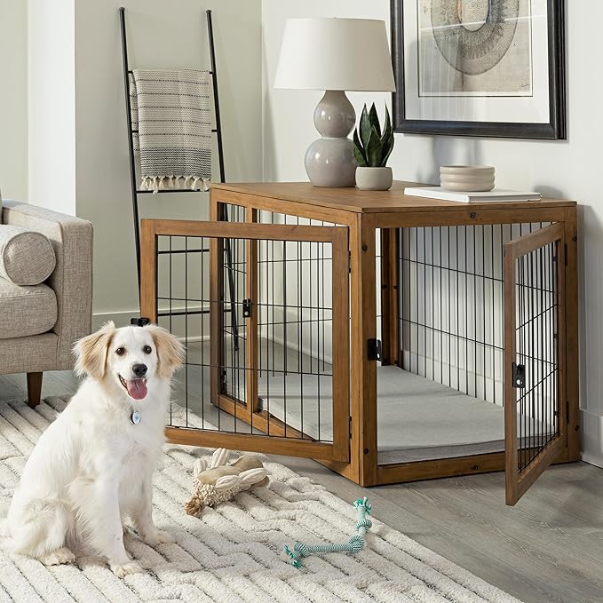 - MODERN DÉCOR - This dog kennel features a wide top, perfect for home decor, lamps, framed pictures, plants, and more while your pet rests comfortably underneath. The modern dog crate blends seamlessly in with your existing décor for a cohesive look.
