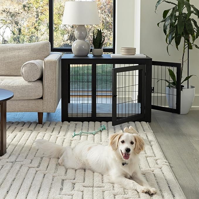- MODERN DÉCOR - This dog kennel features a wide top, perfect for home decor, lamps, framed pictures, plants, and more while your pet rests comfortably underneath. The modern dog crate blends seamlessly in with your existing décor for a cohesive look.