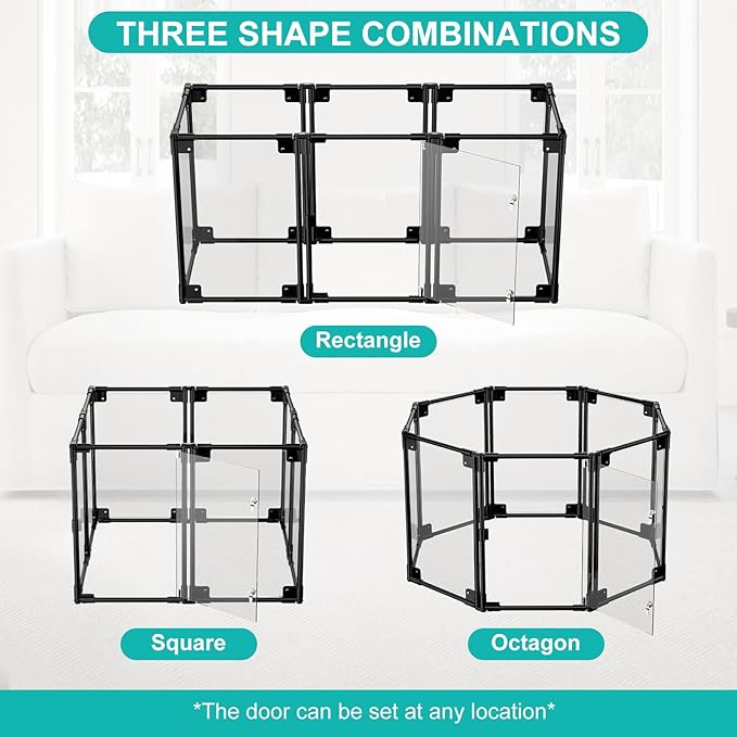 - 【Enhanced Visibility & Safety】: Maintains original 3mm scratch-resistant acrylic walls with reinforced steel joints. 360° transparent design provides 28% better visibility than mesh pens while preventing climbing (25" height blocks 95% of small breed jumps).
