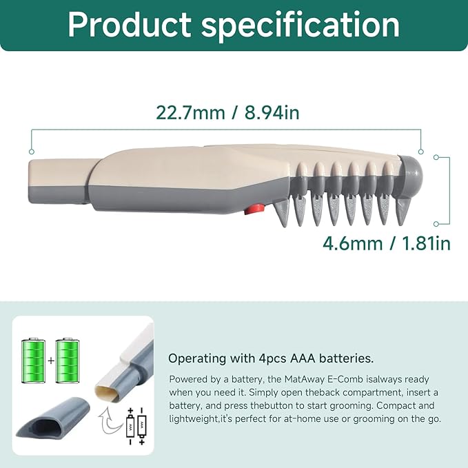- 【Quiet and Calming】The ultra-quiet operation of the Mataway E Comb helps keep your pets calm during grooming, ideal for nervous or first-time groomers.
