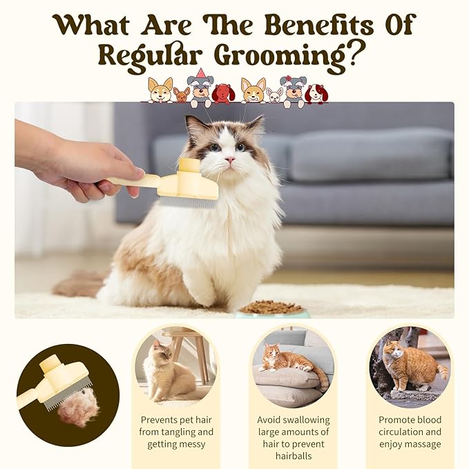 1Pcs Pet comb and Wall Corner Massage comb,for Dogs & Cats with Long & Short Stainless Steel Metal Teeth for Shedding and Tangles, Self-Cleaning Pet COmb for Dogs and Cats,Comfort safety,Anti static