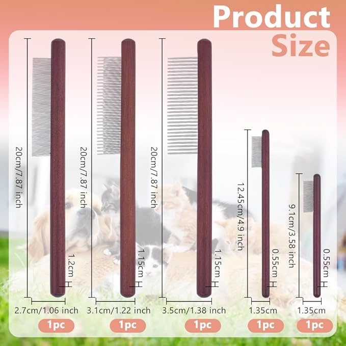 - Package Included--You will receive 5 pcs stainless steel teeth pet combs with wooden handles, 5 sizes in total, 1 pc/size, plenty of quantity and styles to meet the needs of different occasions