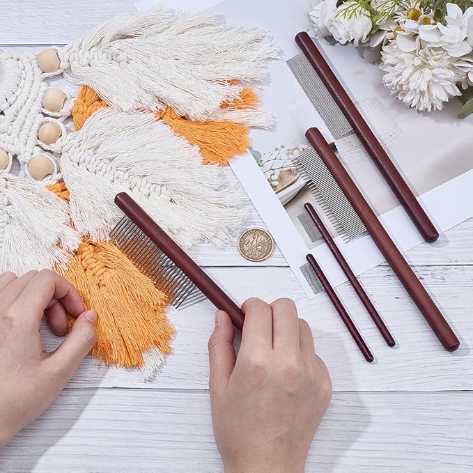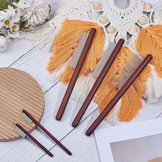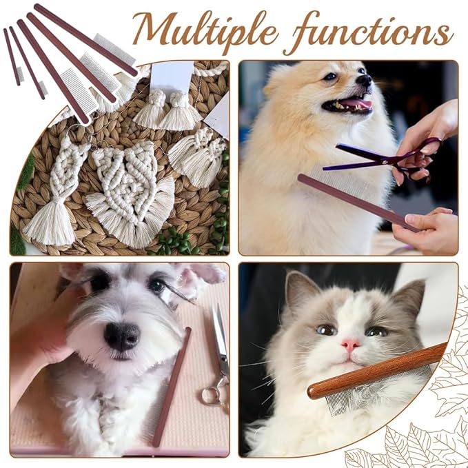 OLYCRAFT 5Pcs 5 Styles Wood Pet Combs Stainless Steel Pet Combs with Wood Handle Grooming Tool for Pets Macrame Fringe Combs Pet Grooming Supplies for Pet DIY Macrame Removing Tangles and Knots