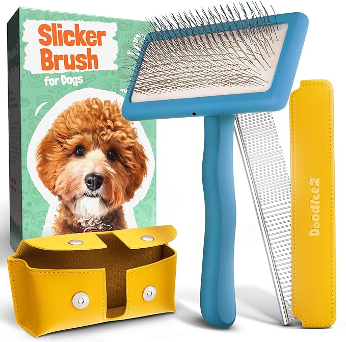 - [COMPLETE GROOMING SET] Comes with a dog slicker brush and a comb for goldendoodles, neatly stored in two vegan leather cases. This doodle brush for dogs is easy to use and doubles as an essential goldendoodle brush to keep coats tangle-free.