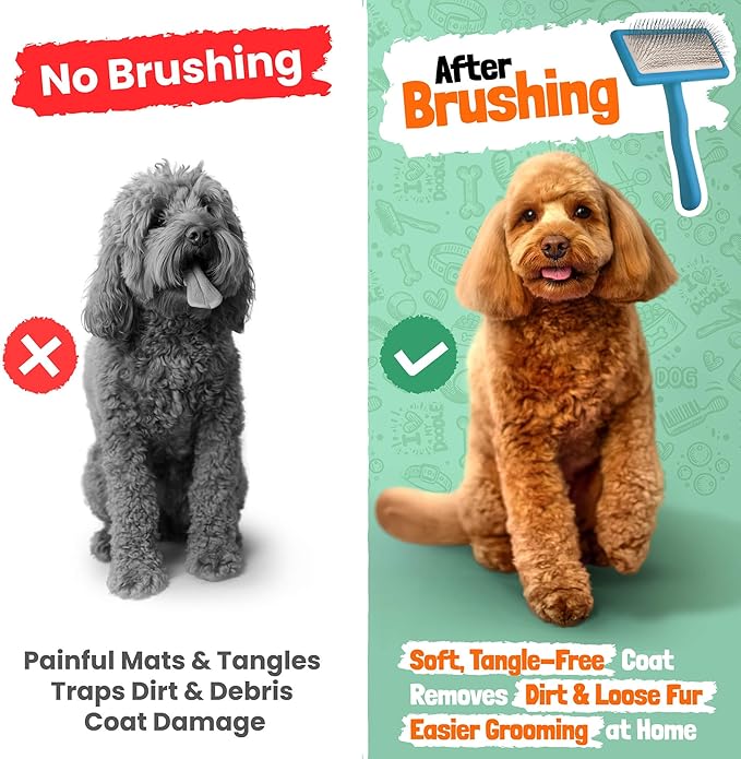 - [EASY GROOMING AT HOME] Our doodle brushes for grooming glide through curls, reducing mats and boosting coat shine. The Doodleez slicker brushes for dogs make grooming easy and stress-free for Goldendoodles, Labradoodles, and Poodles.