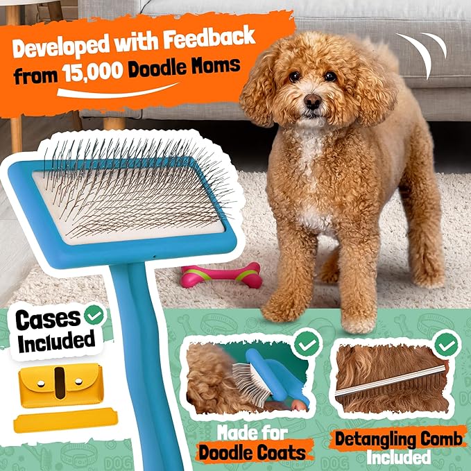 - [DESIGNED BY DOODLE MOMS] Built with real feedback, our doodle slicker brush was crafted to handle tough coats. Whether you need a goldendoodle brush or a slicker brush for poodles, this kit is made with love by Doodle Moms who know curly coats best.