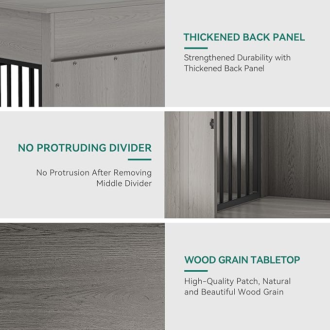 - ??-in-1 Dog Crate with Removable Divider?‘This 2-in-1 dog crate furniture features a detachable partition that allows you to create two independent spaces for your pets or remove it to create a single large cage for large dogs or more interactive play. Perfect for housing two medium or large dogs with separate or shared living arrangements.