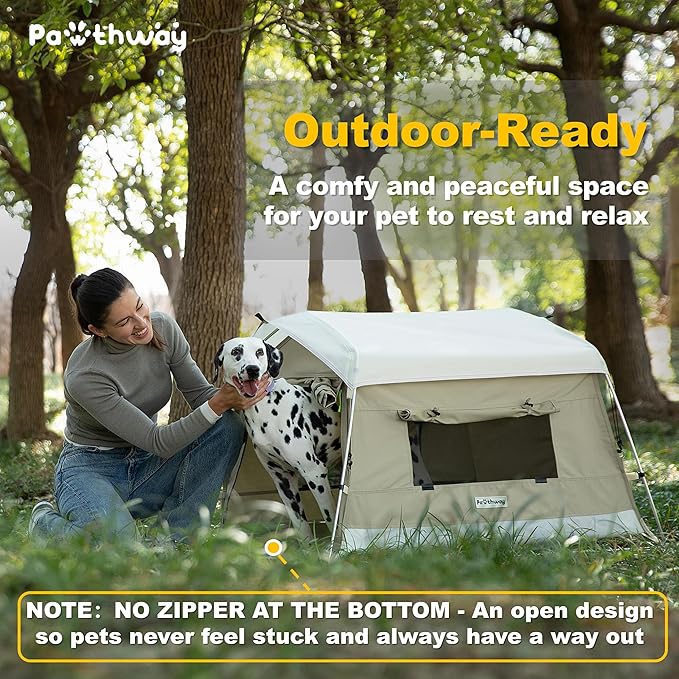 - NO ZIPPERS AT THE BOTTOM: This dog tent features an open-bottom doorway, allowing pets to exit easily if they feel stressed or uncomfortable. It’s safer in emergencies and ensures your pet never feels trapped. For safety, please do not leave pets unattended inside.