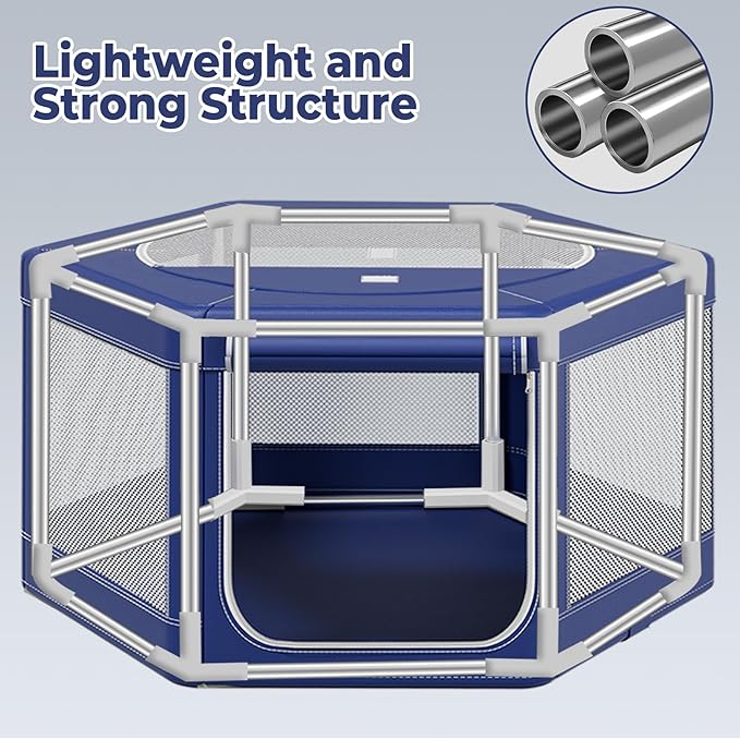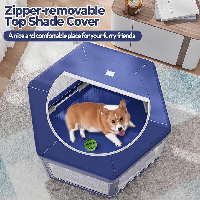- 『Superior Breathable Oxford Fabric』- Our puppy pet playpen is made from high quality thickened waterproof 600D Oxford cloth, the mesh is made from high-strength nylon wire, which have strong abrasion resistance and toughness. Offers exceptional breathability, even on hot summer days, your puppy won't feel stuffy inside the enclosure.( Top cover can open )