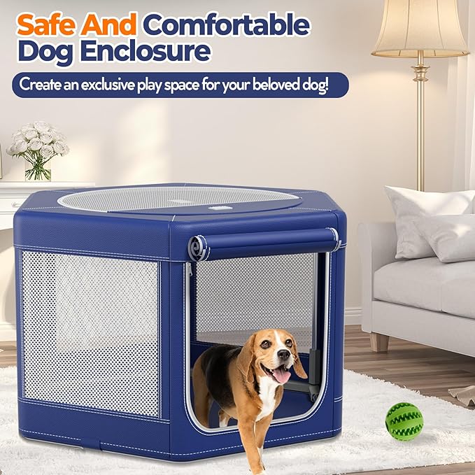 - 『Ample Space and Visibility』- The design offers ample space for your puppy to move around freely. Our fence is convenient for the owner to carry the dog in and out, breathable space for the dog, the transparent nature of the mesh cloth allows for good visibility, so your pet doesn't feel isolated while still being contained. It gives them a sense of security while allowing you to keep an eye on them. and the Upward rolling door design is convenient for the dog to enter and exit the door.