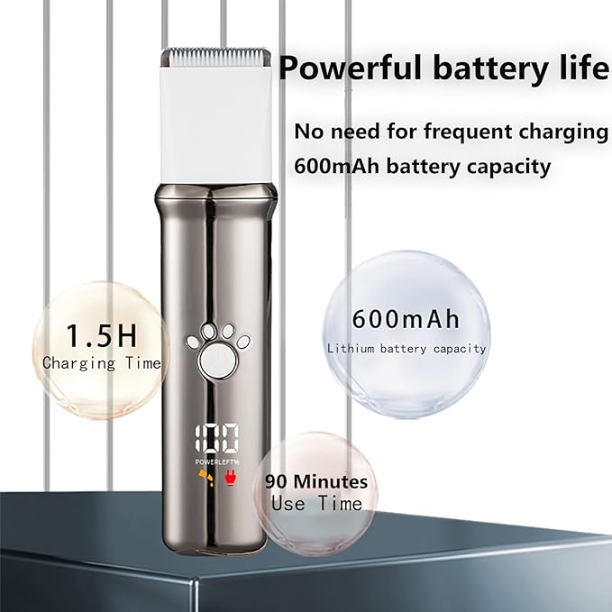 - Rechargeable and Versatile Cat Shaver: Our pet trimmer set can be used both cordlessly and with a cord. After 5 hours of charging, dog grooming supplies provide up to 90 minutes of continuous use, eliminating the need for frequent battery changes or tangled wires.