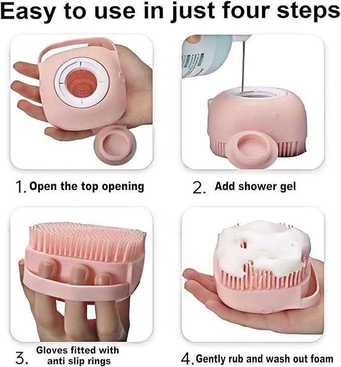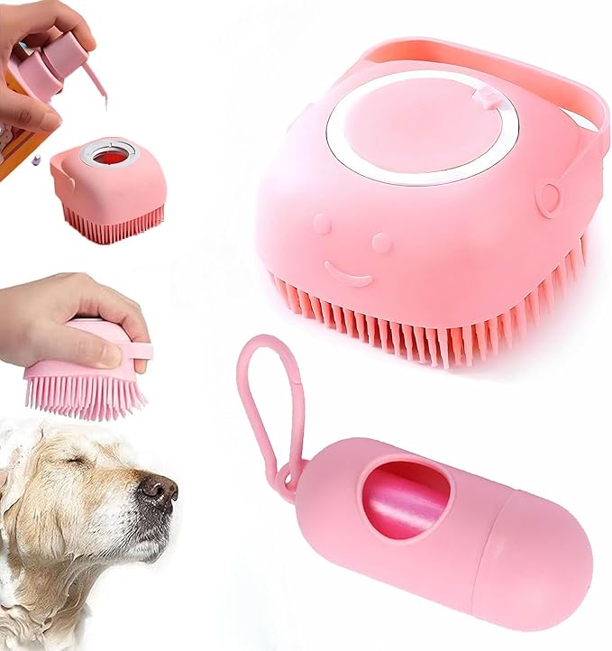 - Shampoo Dispensing Design: 1Pcs Dog Bath Brush is designed with shampoo dispensing. Pour in your pet's usual shampoo and water, shake well, and gently squeeze the brush to create a rich foam.