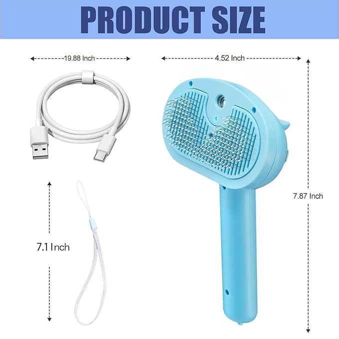 - SPRAY DESIGN: Innovative spray function, reduces static and flyaway fur The steam brush has an innovative spray function. Simply fill the water tank with water or a leave-in solution, turn on the spray switch and a fine, even mist is released. This mist effectively reduces static and flyaway fur during brushing, making the process smoother and more comfortable. To further enhance grooming, you can add conditioner or softener to the spray to improve the softness and shine of your pet's coat, leaving them looking shiny and healthy.
