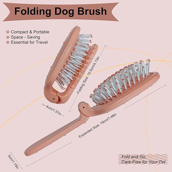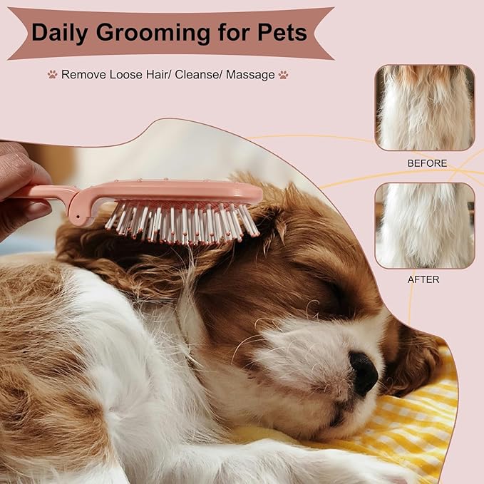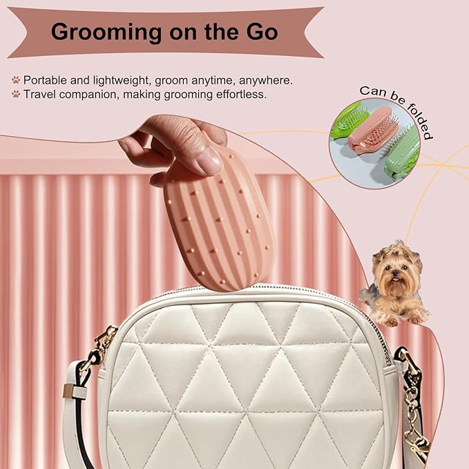 Foldable Cactus Puppy Brush Small Dogs Soft Bristles Grooming Tool Yorkie Shih Tzu Maltipoo Maltese (Pink)