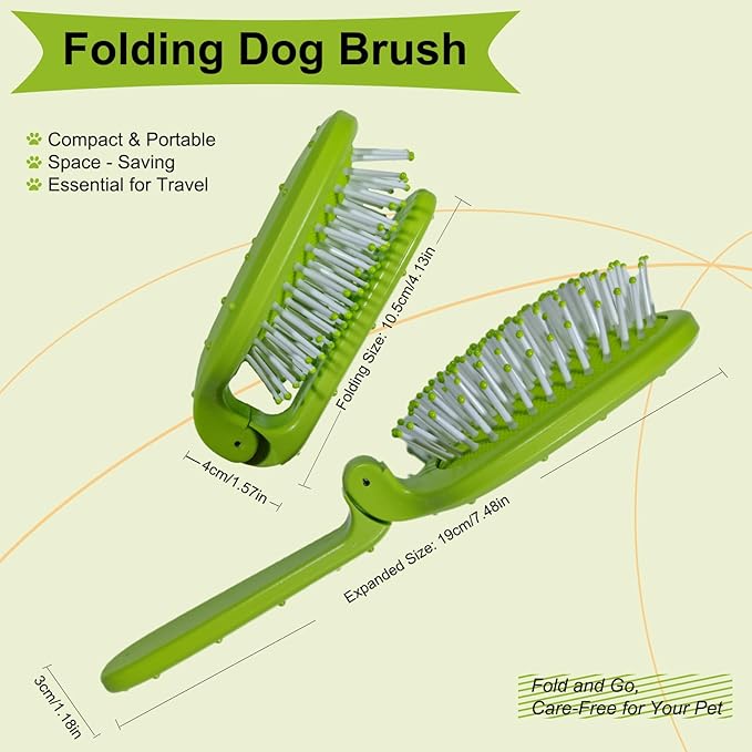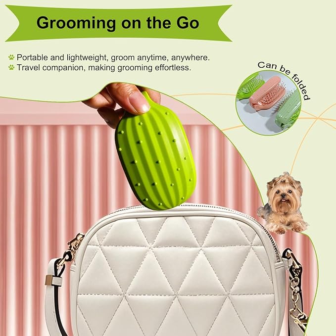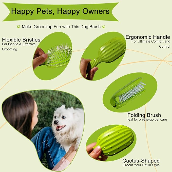 Foldable Cactus Puppy Brush Small Dogs Soft Bristles Grooming Tool Yorkie Shih Tzu Maltipoo Maltese (Dark Green)