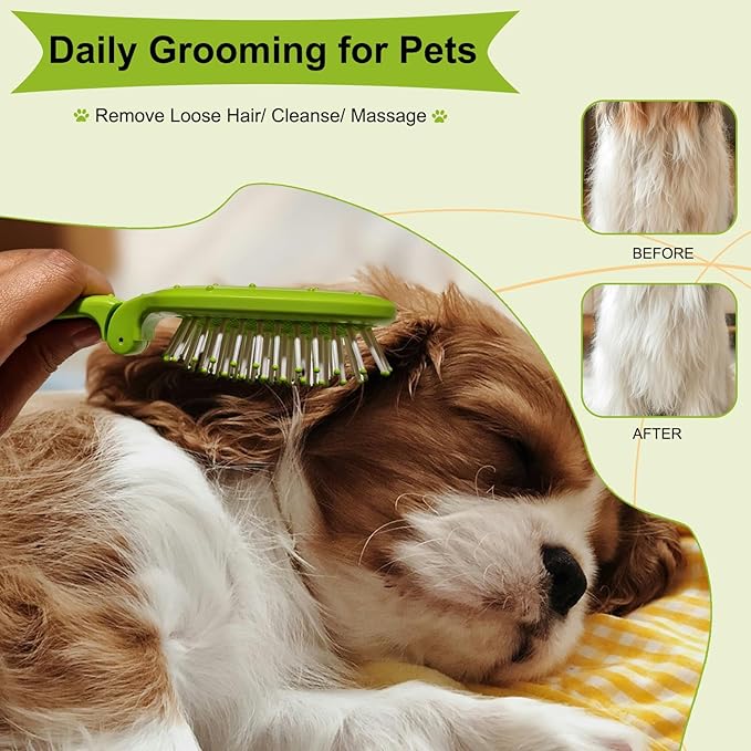 - Dual-Action Bristle System combines gentle detangling and loose hair removal with rounded flexible teeth that adapt to body curves massaging skin to stimulate circulation and distribute natural oils for healthier coats while preventing painful pulling on mats in long-haired breeds