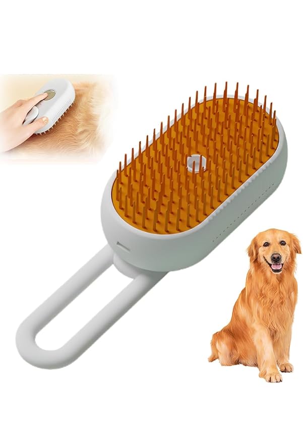 Pet Grooming Brush for Dogs, Soft Silicone Bristles, Ergonomic Handle, White and Orange