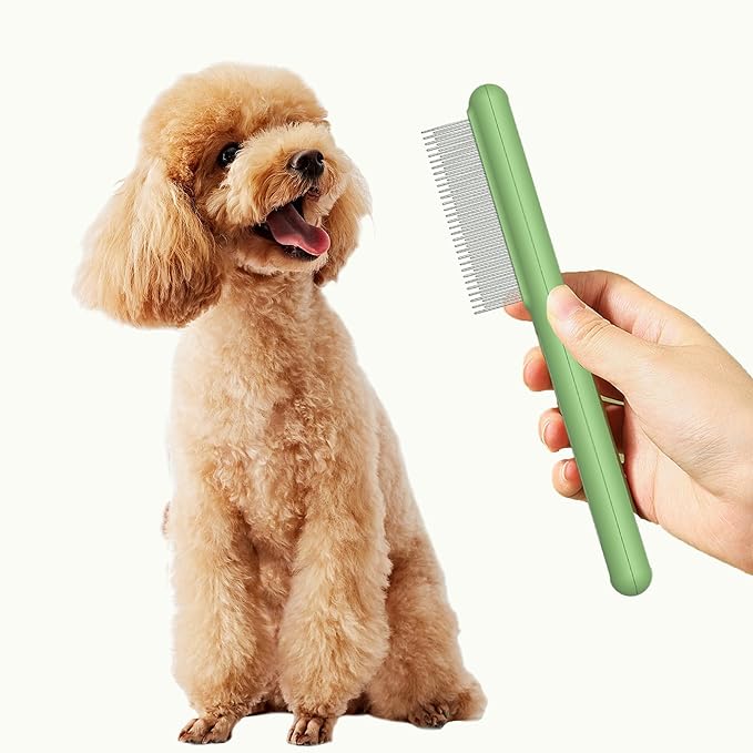 Small Dog Grooming Brush,Puppy Hair Brush for Shedding Tangles Pet Hair Removal Comb Stainless Steel Teeth Flea Comb - Perfect for Shih Tzus,Yorkies,Maltipoos,Maltese,Small Breeds (Long & short teeth)