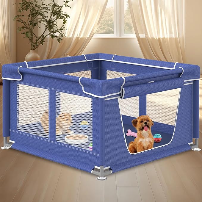 - EASY TO INSTALL: The playpen for dogs indoors small is easy to install, usually takes only 10 minutes to assemble, and no tools are required, the disassembled size is very small, making it perfect for taking with you on the go.