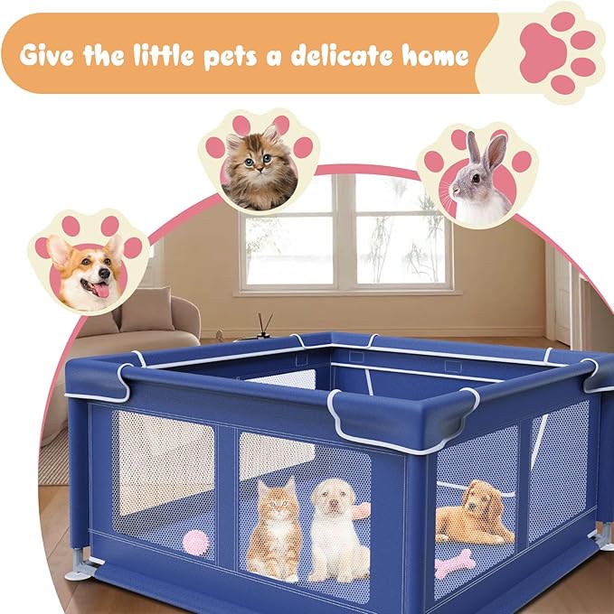 - SAFE SPACE: The size of the puppy playpen is 42*42*26 inch, which is suitable for most small pets, and can accommodate multiple small pets playing at the same time, providing a safe playing environment for pets, very suitable for nursing pets and their puppies.