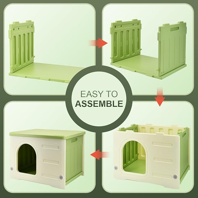 Outdoor Pet Kennels House – Waterproof & Insulated Shelter for Feral Cats & Dogs, Weatherproof Elevated Pet House for Outdoor/Indoor Use, Sturdy Plastic Pet Bed, Easy Assembly