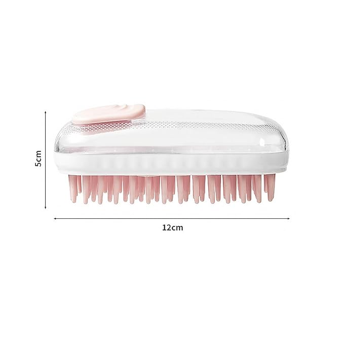 Pet Grooming Brush with Silicone Bristles, Massage Scrubber for Dogs & Cats, White and Pink (Gray)