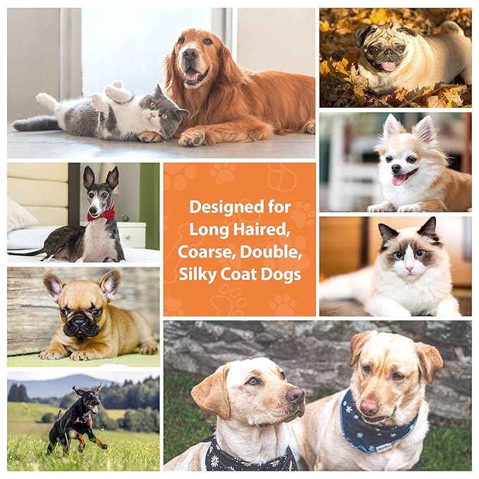 - Dog Brush and Comb Set: Deshedding dog brush features 27mm steel pins with rounded tips. Dog comb design for remove detailed matted fur, making it the perfect brushing experience for both cats and dogs. This dog&cat hair brush is nice for removing dead hair and tangles, while also giving your pet a gentle massage