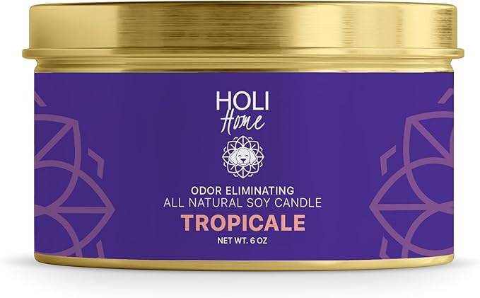 HOLI Pet Odor Eliminator Candle – Tropicale Scent – All Natural Soy Wax, Paraben & Phthalate Free, Pet Safe, Long-Lasting 30-Hour Burn, Non-Toxic & Plastic-Free Air Freshener for Home