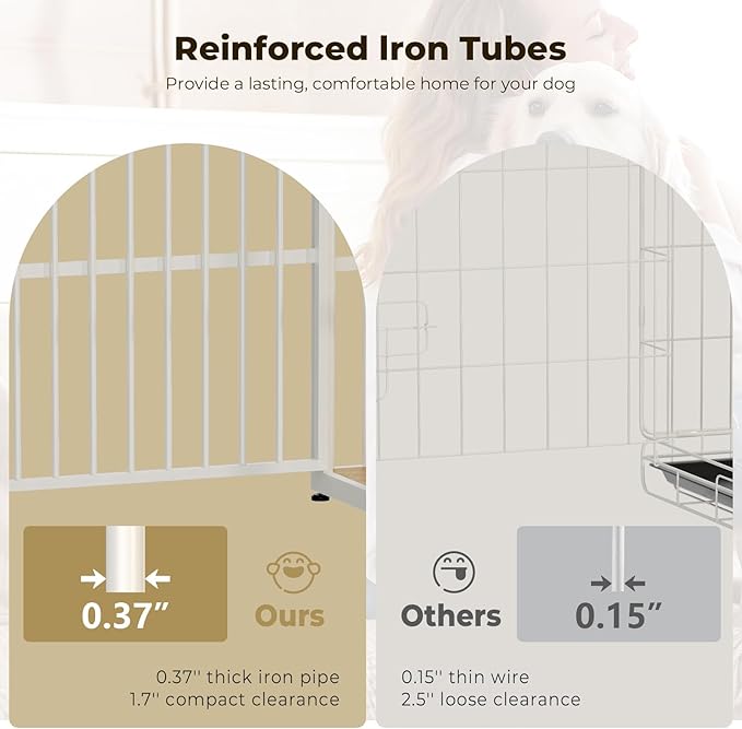 - ?�Sturdy and Chew-Resistant?‘This dog crate furniture is made of premium particle board and iron pipe, which is stronger and more chewy; It will accompany your dog throughout the growing stages; It's an ideal gift for your dog