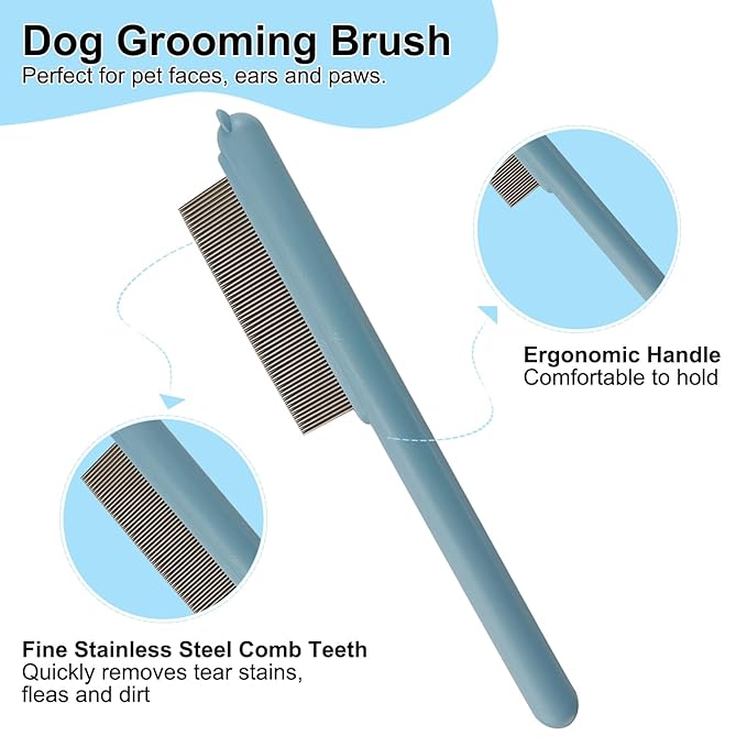 - The comb’s ergonomic plastic handle provides a comfortable grip for both quick daily brushing and thorough grooming sessions, reducing hand fatigue and allowing precise control as you work through your pet’s coat. The stainless steel teeth are rust-resistant and smooth-edged, ensuring they glide through fur without scratching or irritating sensitive skin, making it safe for yorkie ,shih tzu ,maltipoo and even cats with similar grooming needs