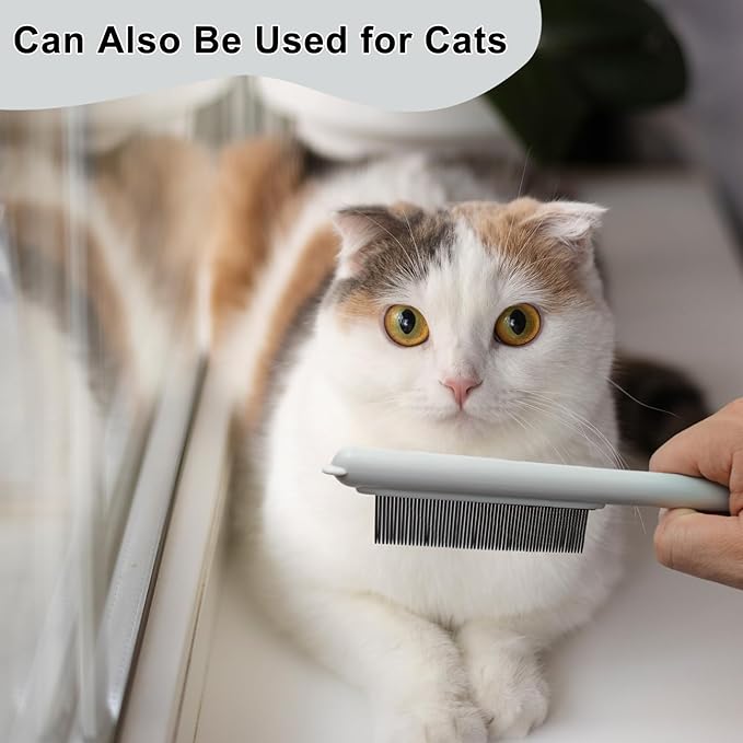 - The comb’s ergonomic plastic handle provides a comfortable grip for both quick daily brushing and thorough grooming sessions, reducing hand fatigue and allowing precise control as you work through your pet’s coat. The stainless steel teeth are rust-resistant and smooth-edged, ensuring they glide through fur without scratching or irritating sensitive skin, making it safe for yorkie ,shih tzu ,maltipoo and even cats with similar grooming needs