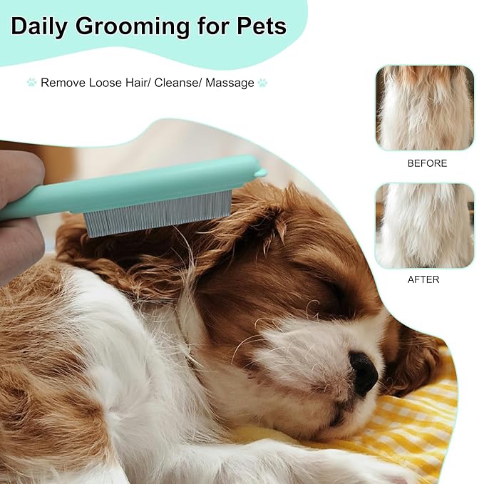 - The comb’s ergonomic plastic handle provides a comfortable grip for both quick daily brushing and thorough grooming sessions, reducing hand fatigue and allowing precise control as you work through your pet’s coat. The stainless steel teeth are rust-resistant and smooth-edged, ensuring they glide through fur without scratching or irritating sensitive skin, making it safe for yorkie ,shih tzu ,maltipoo and even cats with similar grooming needs
