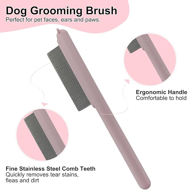 - The comb’s ergonomic plastic handle provides a comfortable grip for both quick daily brushing and thorough grooming sessions, reducing hand fatigue and allowing precise control as you work through your pet’s coat. The stainless steel teeth are rust-resistant and smooth-edged, ensuring they glide through fur without scratching or irritating sensitive skin, making it safe for yorkie ,shih tzu ,maltipoo and even cats with similar grooming needs