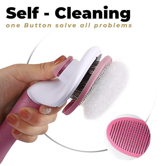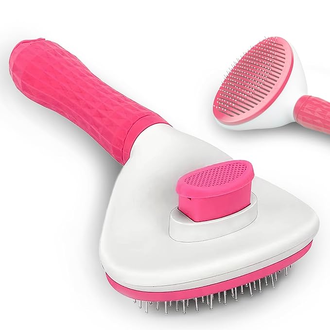 Self-Cleaning Slicker Brush for Dogs & Cats – Deshedding Pet Grooming Tool with Ergonomic Handle – Pain-Free, Rust-Resistant Bristles – Eco-Friendly for Long & Short Coats (Pink)