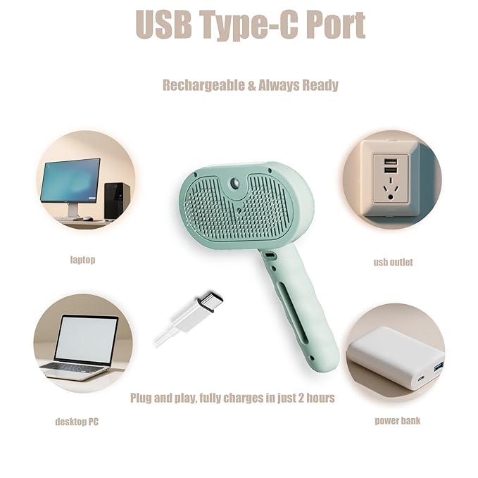 - 【Type-C Interface] 】- Equipped with a Type - C interface; this steam brush allows for easy charging and can be used anytime; whether you're at home or outdoors. It's an essential tool for pet travel. No matter where you are; as long as there's a power source; you can use the steam function to keep your furry friend looking their best.