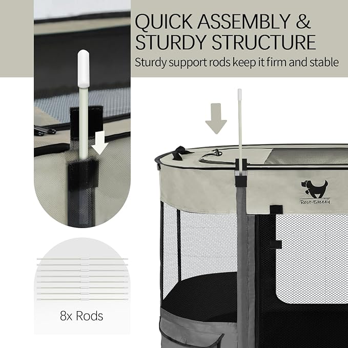 Rest-Eazzzy Dog Playpen, Foldable Kitten Playpen for Medium Dogs, Portable Pet Puppy Playpen with Removable Shade Cover, Indoor Outdoor Travel Camping Use for Small Pets with Carrying Case (L, Grey)