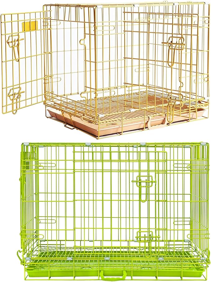 Homey Pet Dog Crates for Medium Dogs, Collapsible Small Dog Cage, Nano-Coated Metal Wire Puppy Kennel Indoor with Removable Floor Grid Tray, Double Doors Dual Locks, GOLD24+GREEN30 Bundle