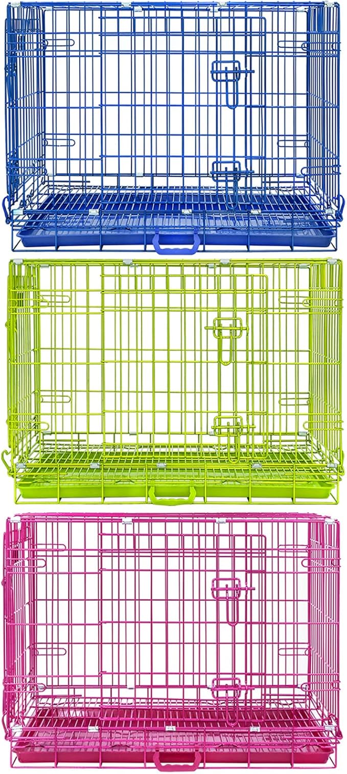 Homey Pet Dog Crates for Medium Dogs, 30 Inch Dog Cage for Small Dogs, Foldable Nano-Coating Metal Wire Small Dog Kennel Indoor with Removable Grid Tray, Double Doors, PINK30+BLUE30+GREEN30 Bundle