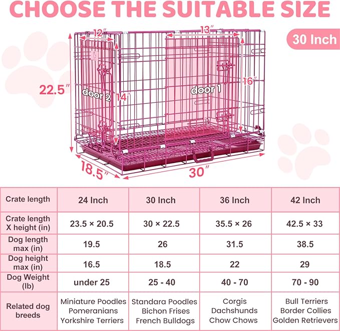 - Durable Pink Dog Cage: Made of thickened metal wire with a nano coating, this medium dog crate extends its life and provides resistance against rust, fading, peeling, and scratches. Not easy to bend or bite. The comfortable, den-like space provides enough ventilation and visibility. Don't let your dog feel cooped up. Reduces cage anxiety and chewing in your dog