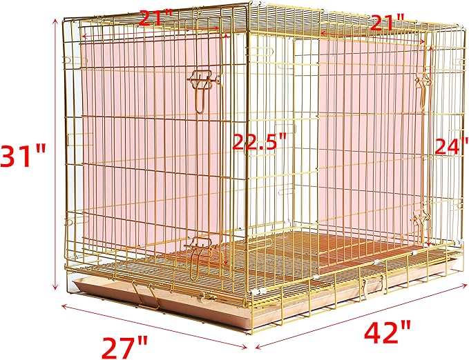 Homey Pet Large Dog Cage, Collapsible Dog Crates for Medium Dogs, Nano-Coating Metal Wire XL Big Dog Kennel Indoor with Removable Floor Grid and Tray, Double Doors, GOLD42+PINK30 Bundle