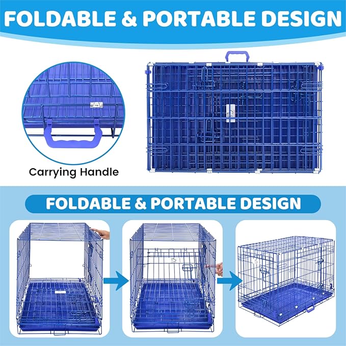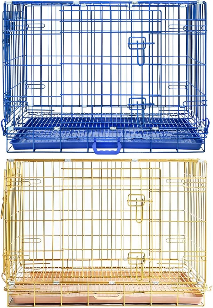 Homey Pet Medium Dog Crate, 30 Inch Dog Cage for Small Dogs, Collapsible Nano-Coating Metal Wire Small Dog Kennel Indoor with Removable Grid Tray, Double Doors, GOLD30+Blue Bundle