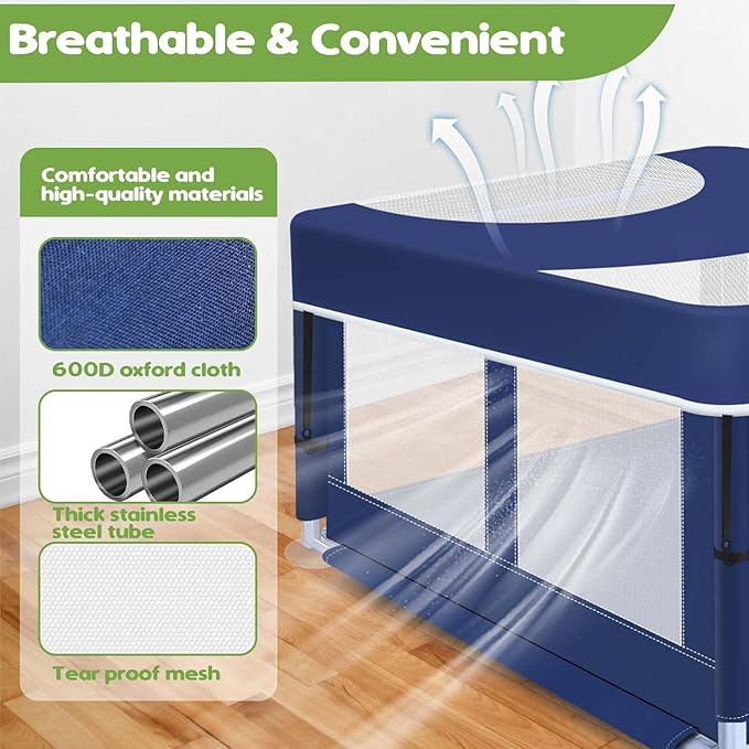 - đ¶ăThoughtful Design for Pet's Well-beingă- With its soft and smooth texture, the Oxford fabric is gentle on your puppy's skin. The fence also features rounded corners to prevent any accidental injuries. Don't worry, our fence have thicker steel tubing keeps the fence from bending easily. We truly care about your pet's comfort and safety.