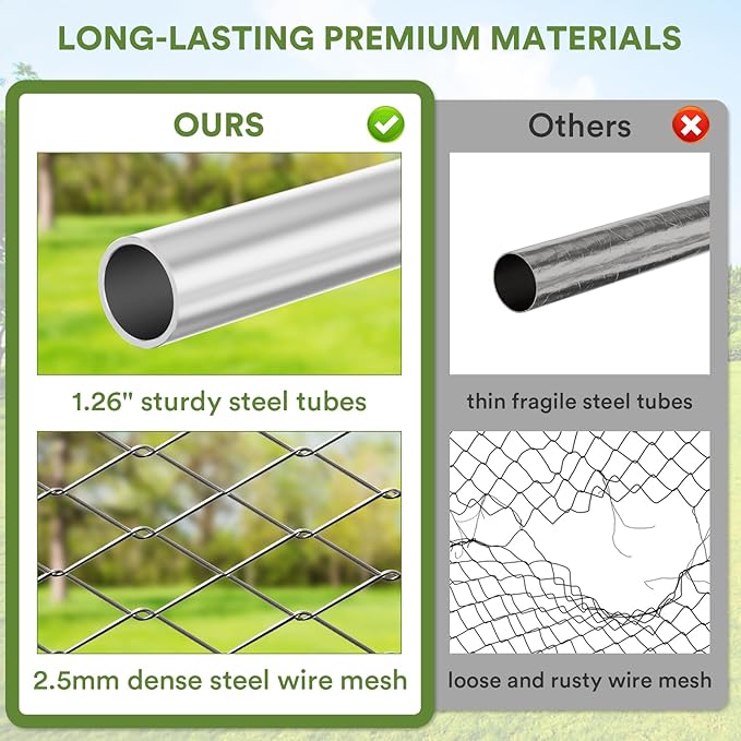 - Enhanced Durability for Long-Lasting Use: The Yafylly outdoor dog kennel with roof features an upgraded design with 1.25-inch galvanized metal pipes and 2.5mm thickened steel wire mesh, offering superior strength and exceptional rust resistance, ensuring long-term durability in all weather conditions.